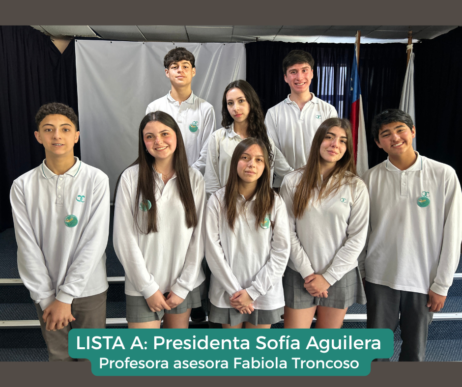 Presidencia: Sofía Aguilera (3° medio B); Vicepresidencia: Renato Olmedo (2° medio B); Secretaría: Bastián Pereira (2° medio A); Tesorería: Josefa Reyes (2° medio B); Delegada: Catherine Kocksch (1° medio B); Ministros Catalina Martínez (1° medio A), Gerardo Ramírez (8° B), Agustín Anuch (7° B), Diego Oliva (6°B)