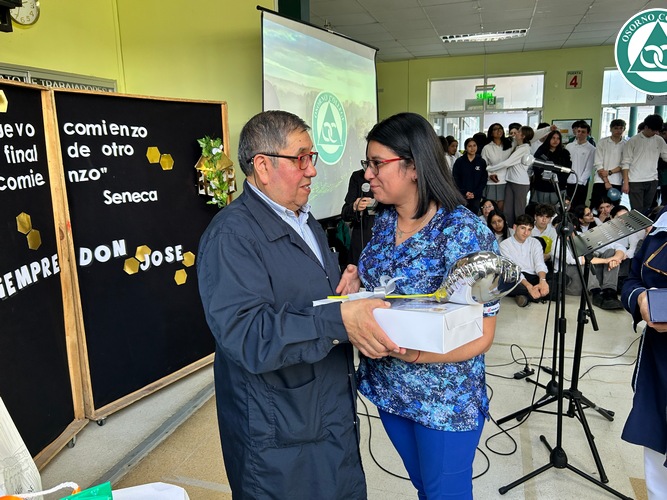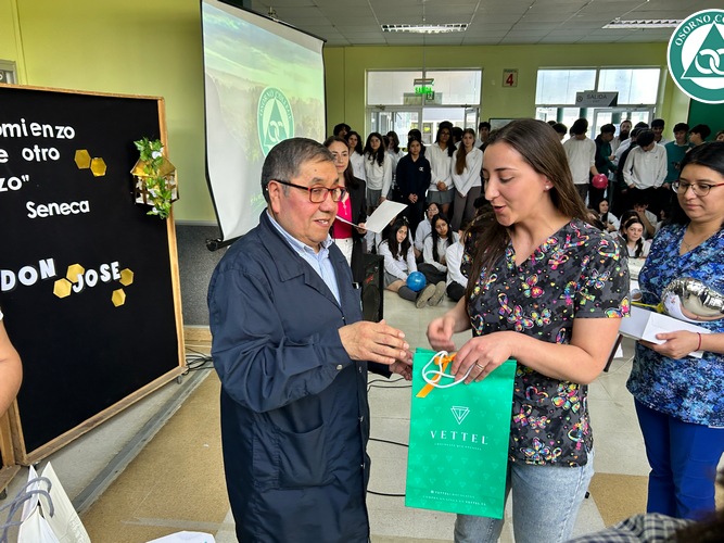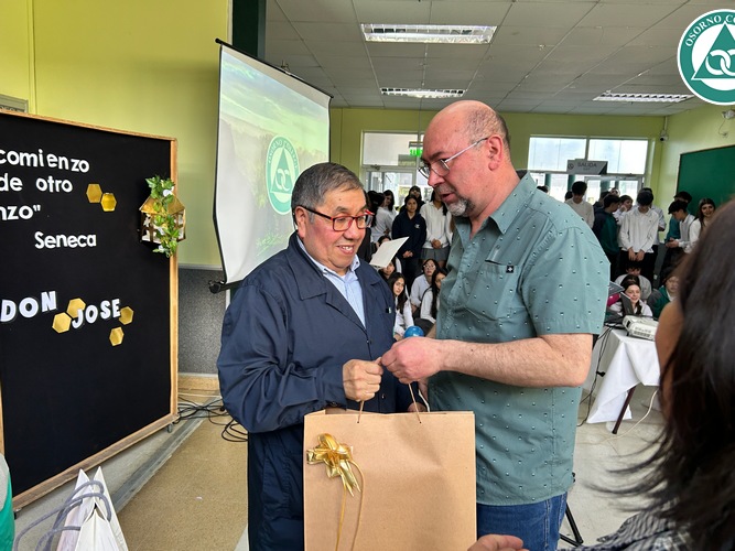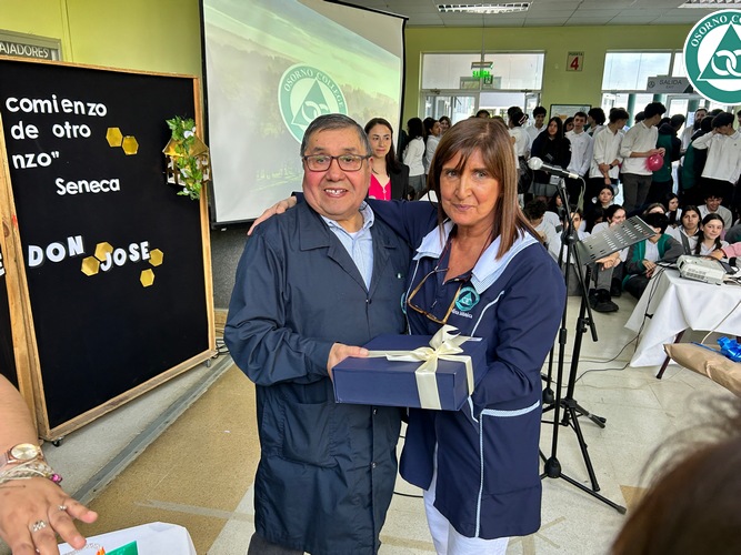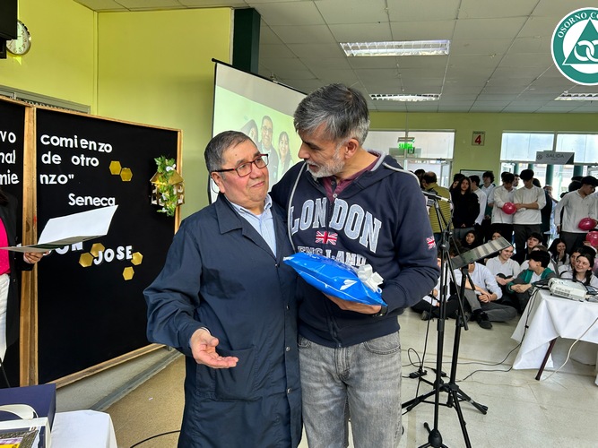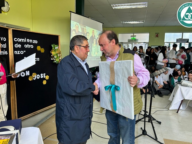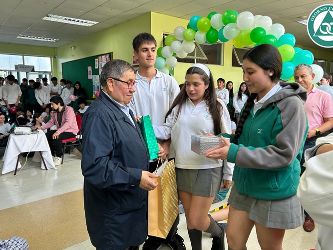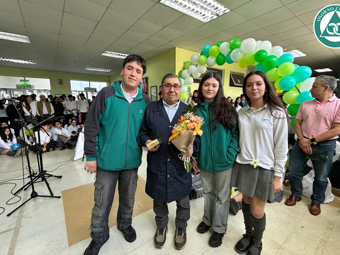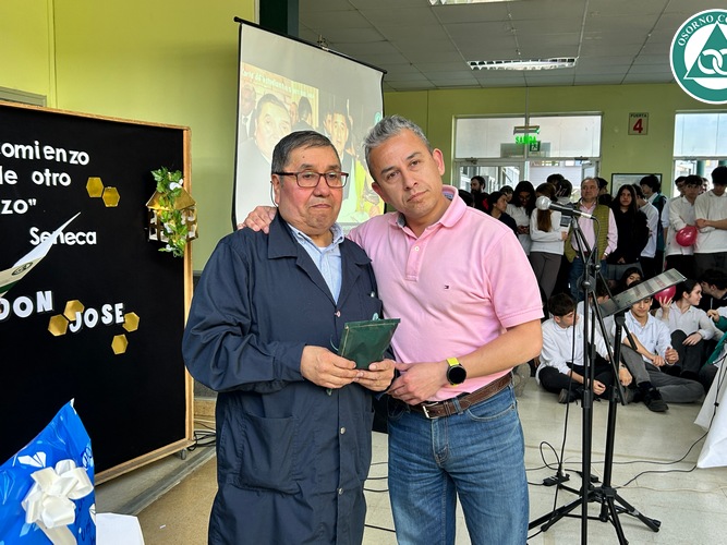 Don José se sorprendió con la celebración preparada en su honor y agradeció a todos los presentes por el cariño que siempre le demostraron. Además, destacó las cualidades que veía todos los días en nuestros estudiantes “me siento bendecido de haber trabajado tantos años junto a ustedes y tener a unos alumnos, niños como ustedes, muy buenos, respetuosos, cariñosos. Eso me llevo aquí en el corazón y cuando esté en mi casa, siempre me voy a acordar de ustedes”.