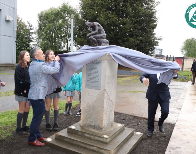 “Esta escultura de bronce, sólida y majestuosa, se convierte en un símbolo perpetuo de nuestro compromiso educativo. El Pensador representa la vocación del Liceo Osorno College de cultivar en sus estudiantes un espíritu reflexivo, libre y crítico”, expresó la autoridad.
