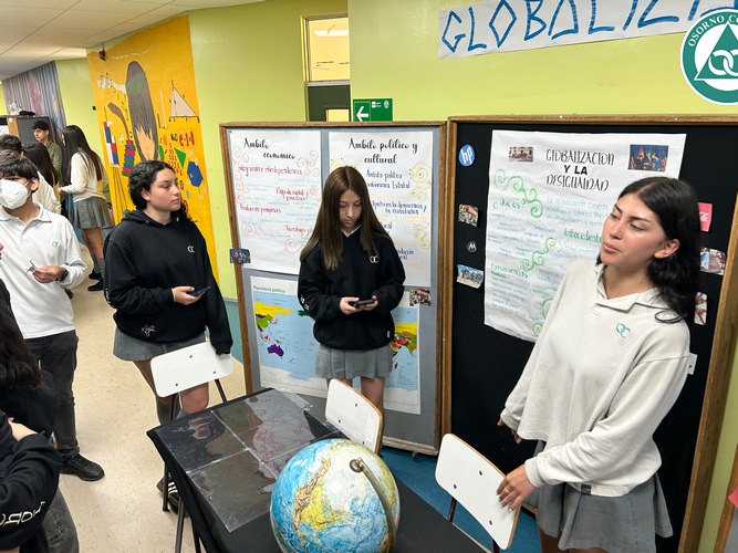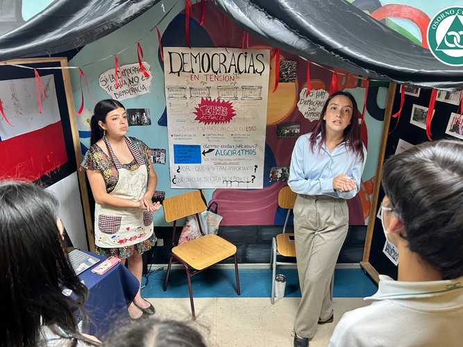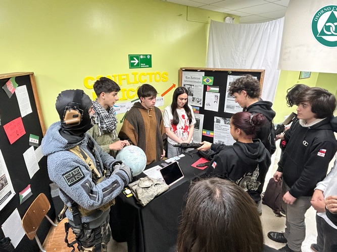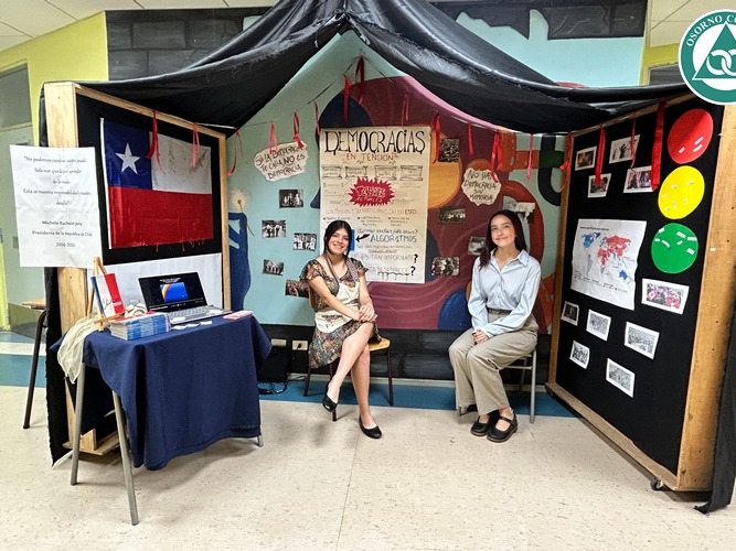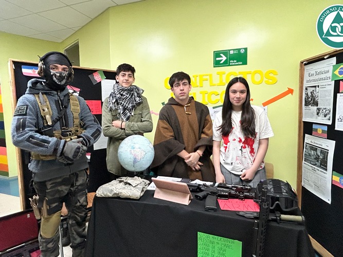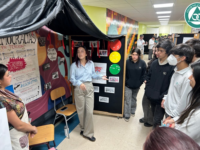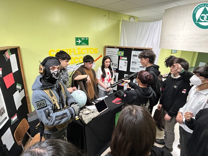 “Museo del Presente” es el nombre de la exposición montada por los estudiantes de 3° MEDIO que cursan el diferenciado “Comprensión Histórica del Presente”, quienes, a través de stands y personificaciones de distintas épocas y lugares, compartieron una mirada teórica, gráfica y crítica sobre diversos temas de la realidad mundial y chilena de las últimas décadas.