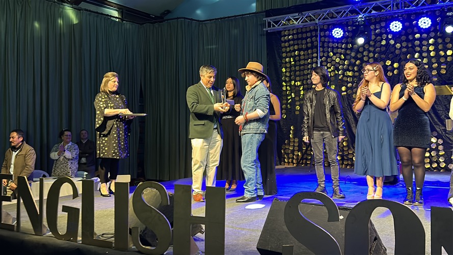 A Temuco, específicamente al colegio Alemán, se fue el primer lugar del English Song Festival en manos del más joven de los participantes de este año: Joaquín Yoshimura, de primero medio, que sorprendió por su calidad vocal y desplante, la perfección del inglés y una gran presentación que encantó a los asistentes a este gran evento que este año tuvo un realce especial por tratarse del aniversario 70 del OC.
