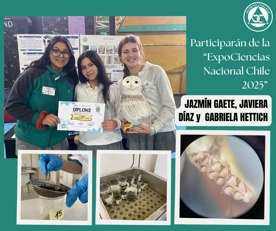 Así lo informó el profesor del taller y asesor de las estudiantes, Marco Barraza, quien detalló que Elisa presentará el proyecto “Evaluando la dieta del tiuque (Daptrius chimango) en la ciudad de Osorno: aporte al entendimiento de la adaptación de aves rapaces en entornos urbanos”; y Gabriela, Javiera y Jazmín expondrán “Tyto alba: analizando su dieta en el sector de Millacura, Río Negro, Región de Los Lagos, Chile”.
