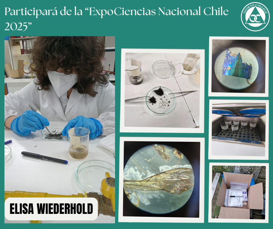 Las estudiantes del Taller de Ciencias, Gabriela Hettich, Javiera Díaz, Jazmín Gaete y Elisa Wiederhold, representarán a nuestro colegio con sus investigaciones en la “ExpoCiencias Nacional Chile 2025”, importante evento que se efectuará a fin de mes en la ciudad de Santiago, congregando a los mejores exponentes de distintos puntos del país.