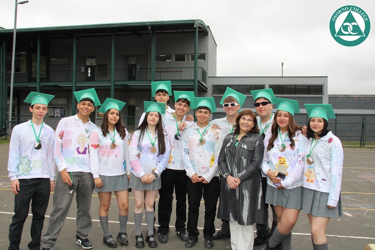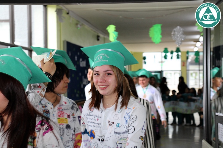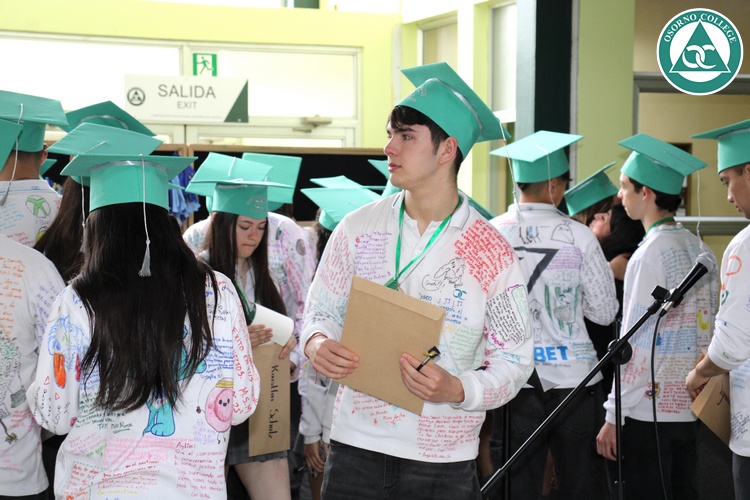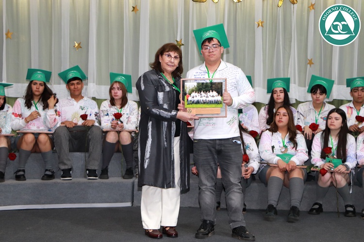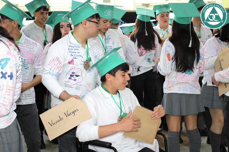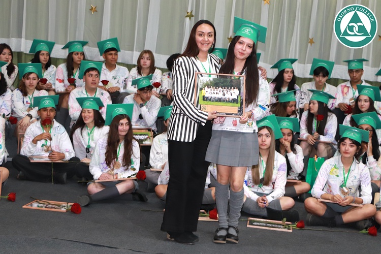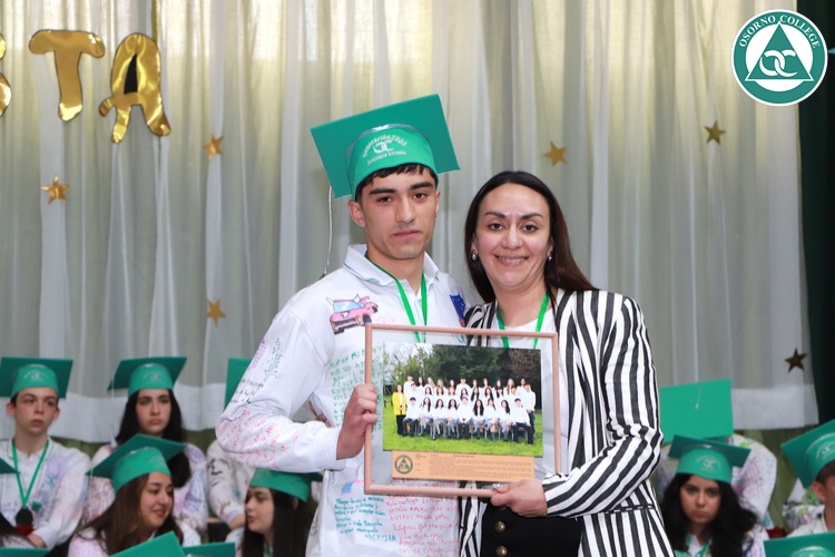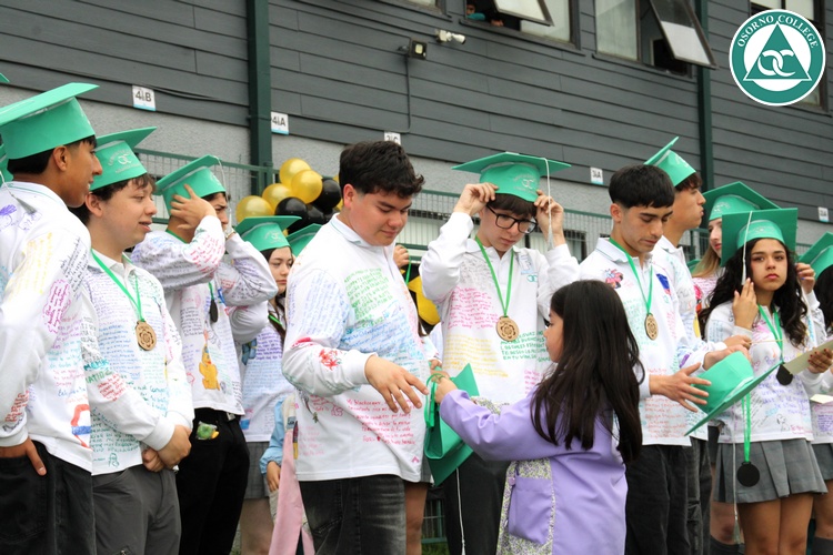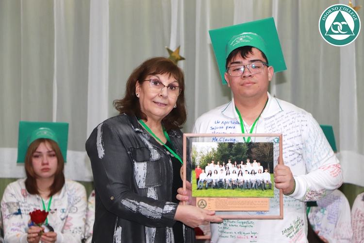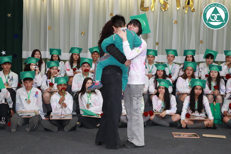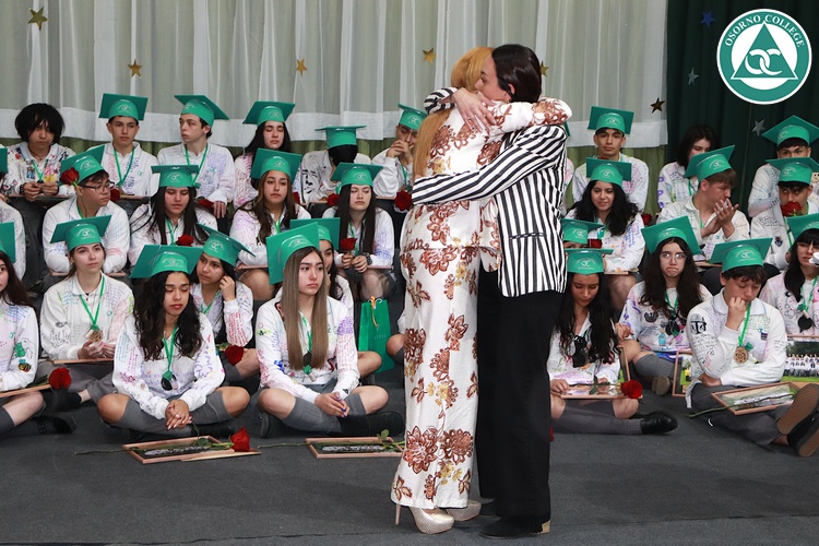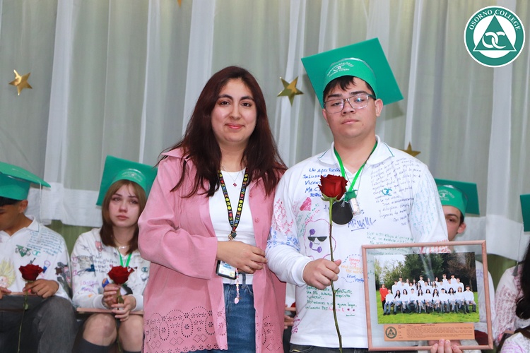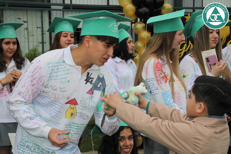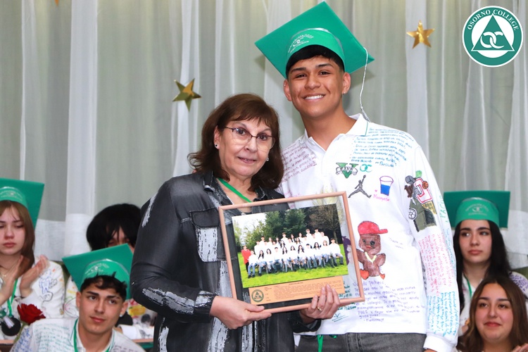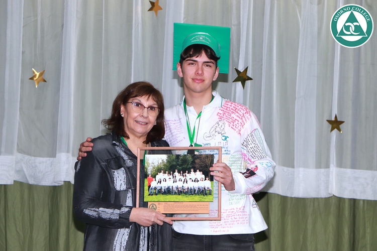 Uno de los momentos más emotivos de la ceremonia de “Última Lista” fue cuando la generación 2025 dijo “presente” al nombre de Diego Rosales Velásquez, su compañero de curso, nuestro querido estudiante, que, aunque ya no está con nosotros, sigue estando en el corazón del Osorno College y de quienes tuvieron la fortuna de compartir con él. Su madre, Ingrid Velásquez, recibió la polera de Dieguito con mensajes de sus compañeros y profesores que lo recuerdan siempre y especialmente en esta importante celebración.