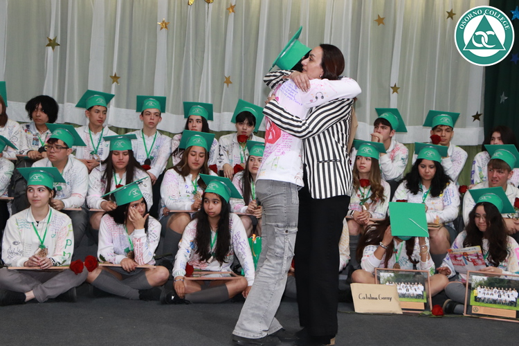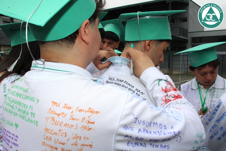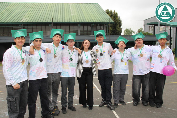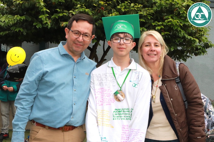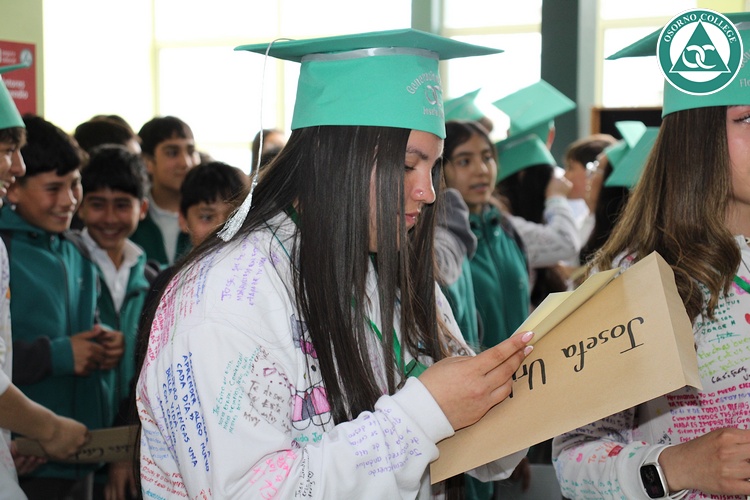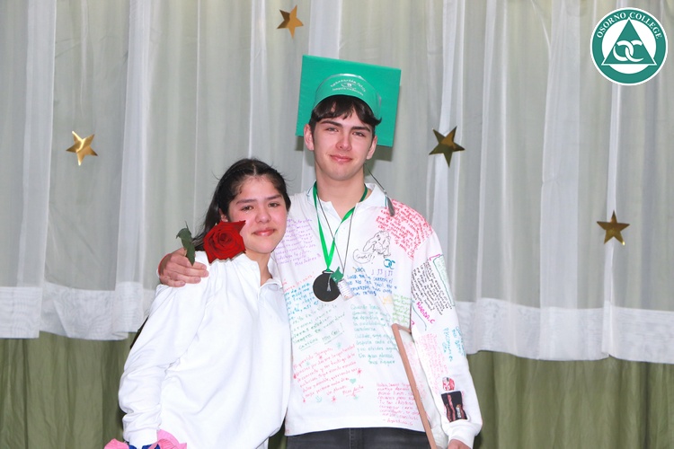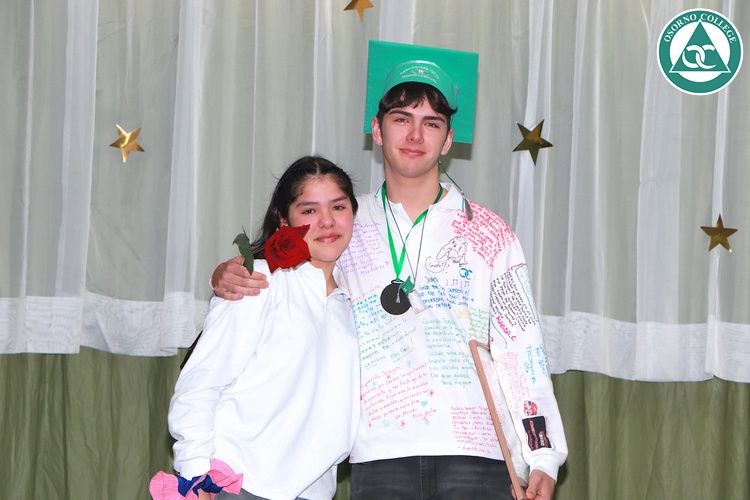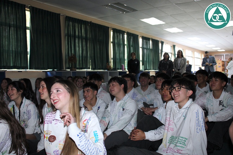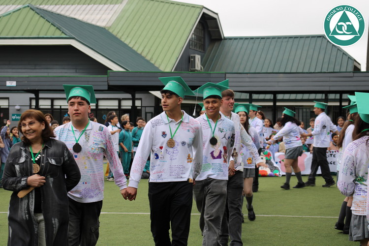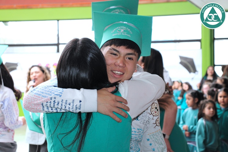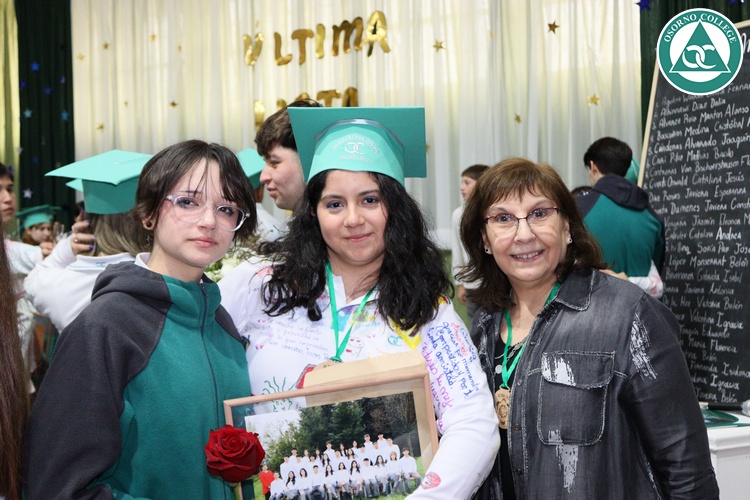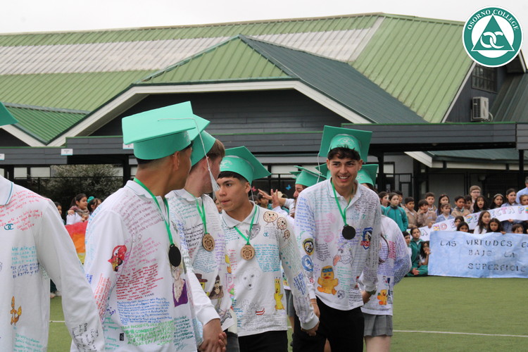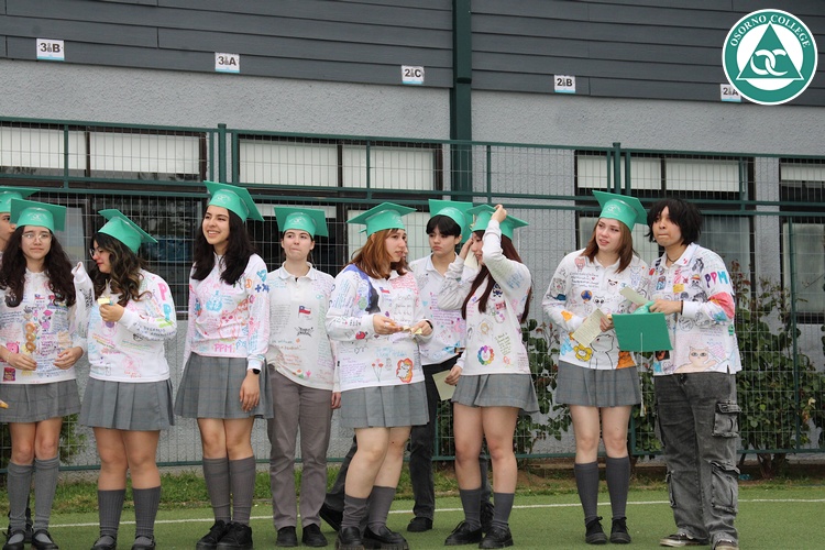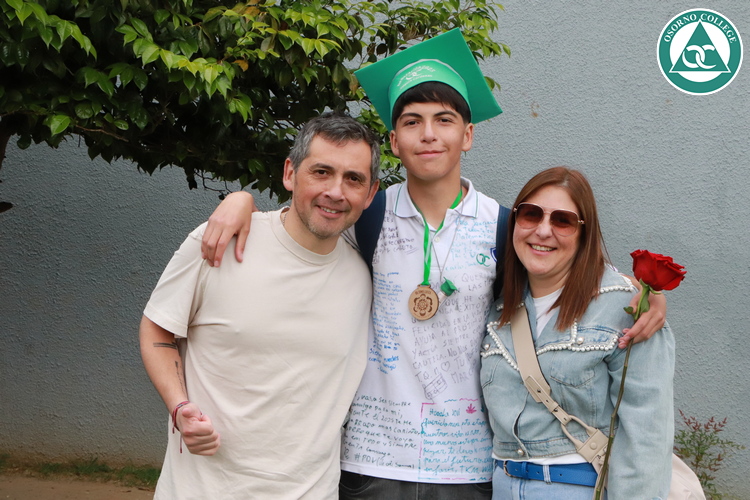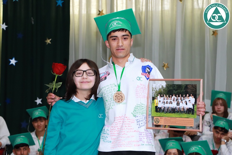 Uno de los momentos más emotivos de la ceremonia de “Última Lista” fue cuando la generación 2025 dijo “presente” al nombre de Diego Rosales Velásquez, su compañero de curso, nuestro querido estudiante, que, aunque ya no está con nosotros, sigue estando en el corazón del Osorno College y de quienes tuvieron la fortuna de compartir con él. Su madre, Ingrid Velásquez, recibió la polera de Dieguito con mensajes de sus compañeros y profesores que lo recuerdan siempre y especialmente en esta importante celebración.