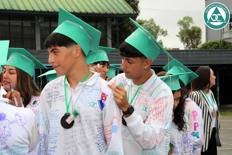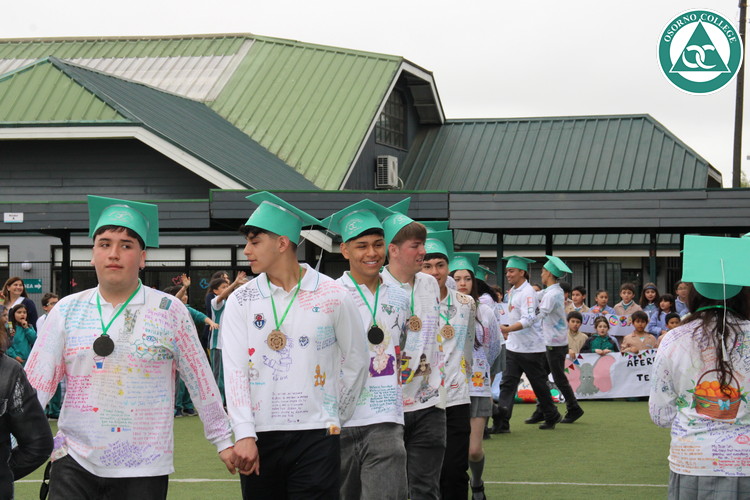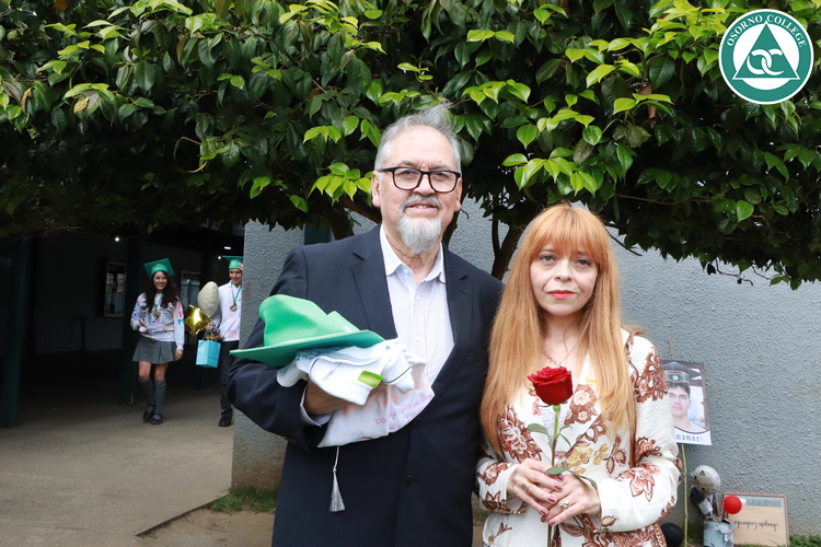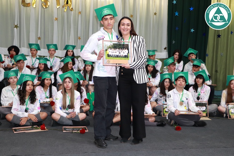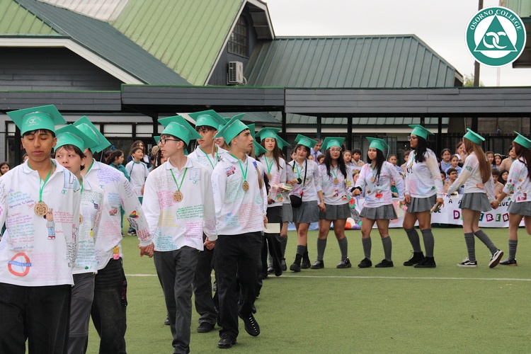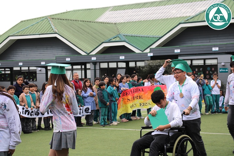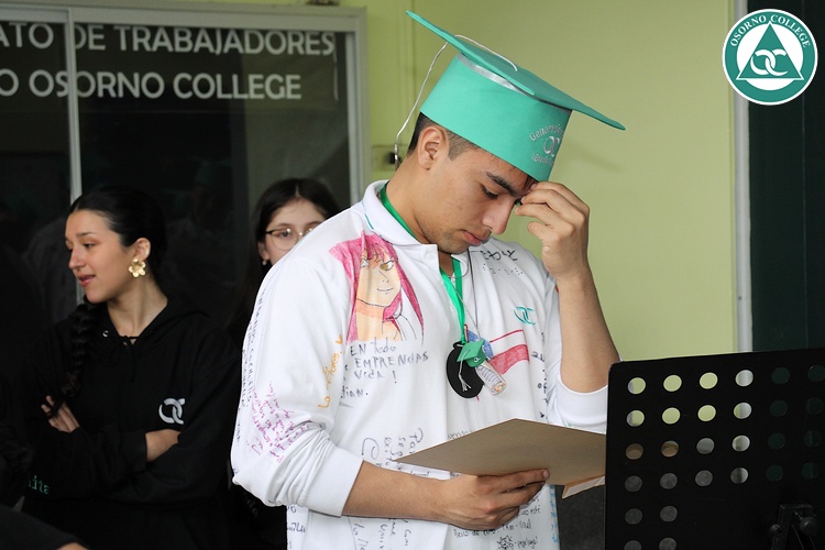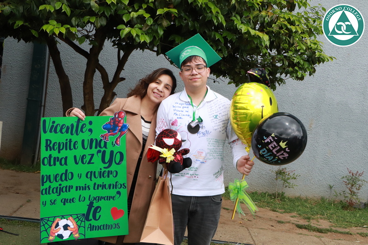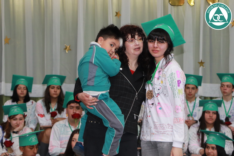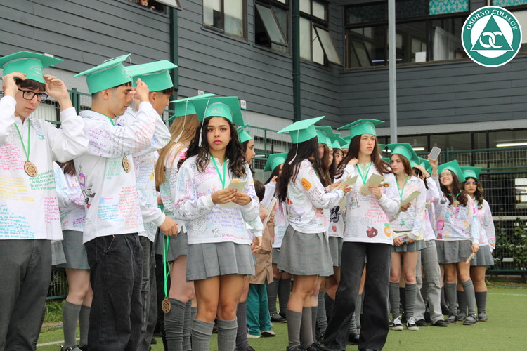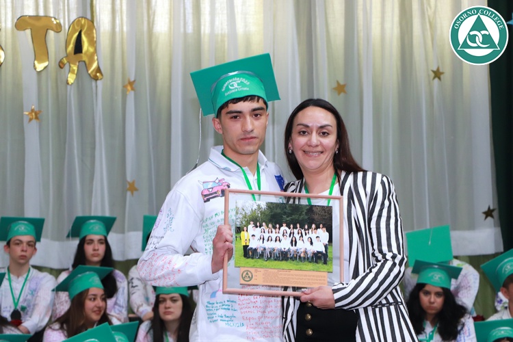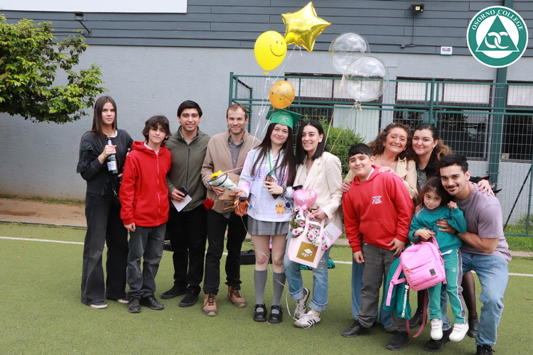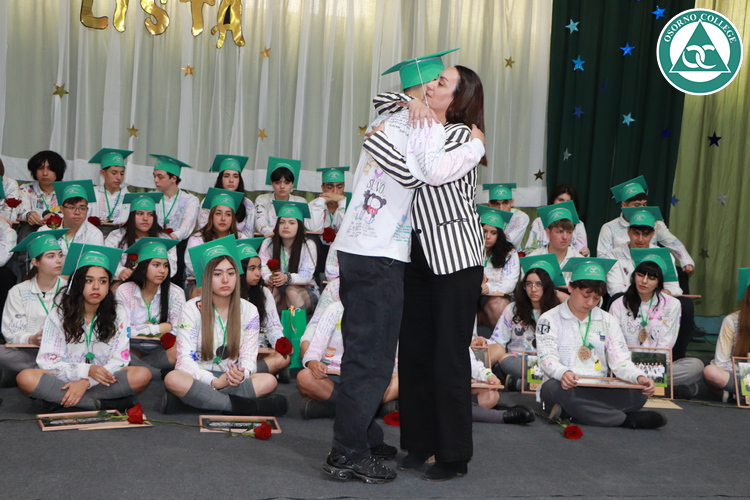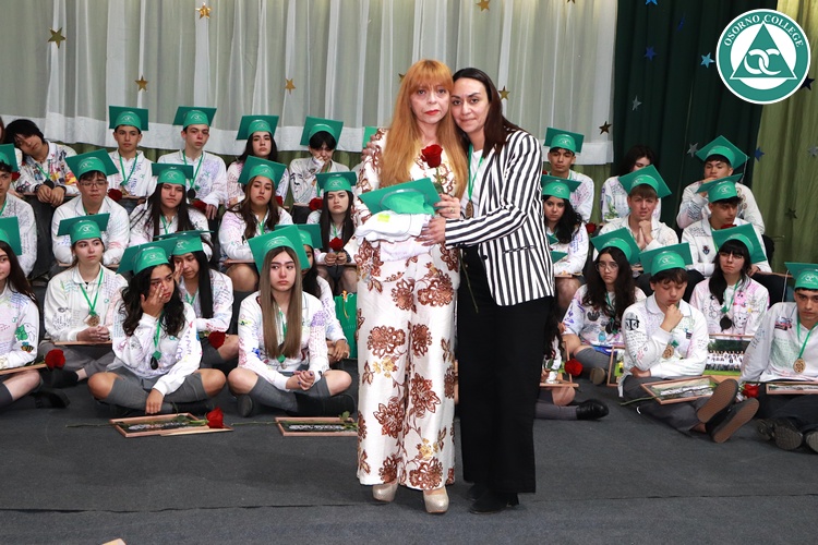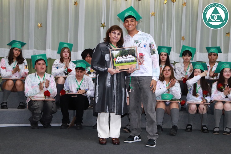 Uno de los momentos más emotivos de la ceremonia de “Última Lista” fue cuando la generación 2025 dijo “presente” al nombre de Diego Rosales Velásquez, su compañero de curso, nuestro querido estudiante, que, aunque ya no está con nosotros, sigue estando en el corazón del Osorno College y de quienes tuvieron la fortuna de compartir con él. Su madre, Ingrid Velásquez, recibió la polera de Dieguito con mensajes de sus compañeros y profesores que lo recuerdan siempre y especialmente en esta importante celebración.