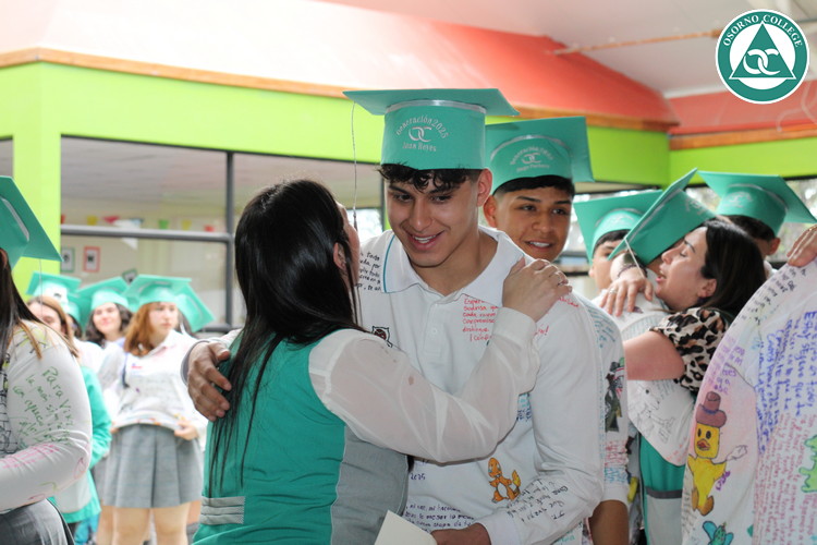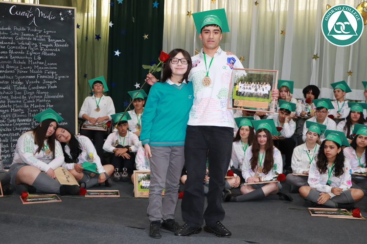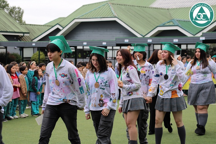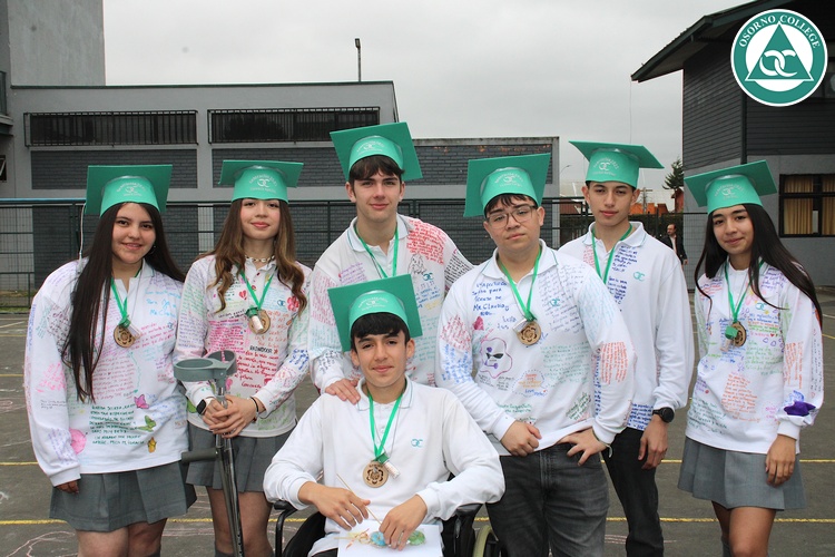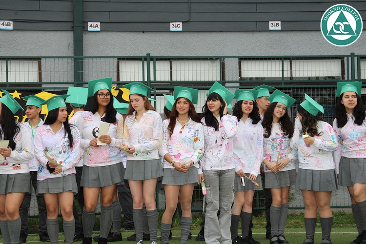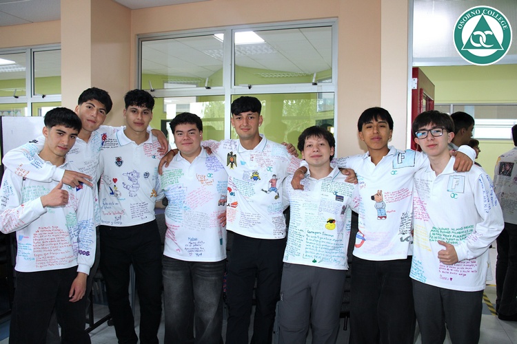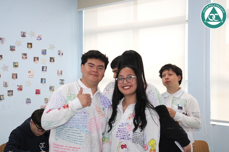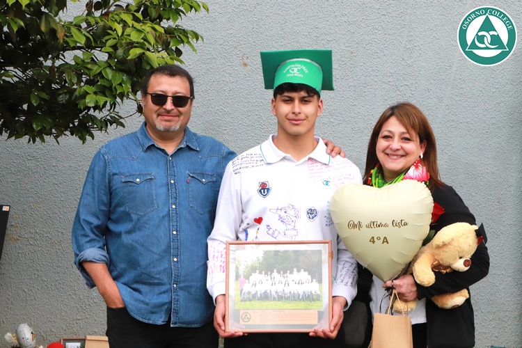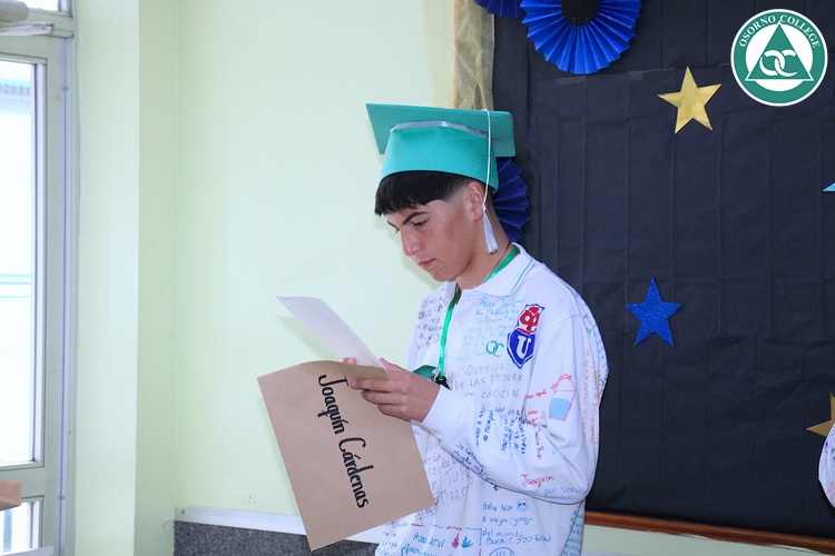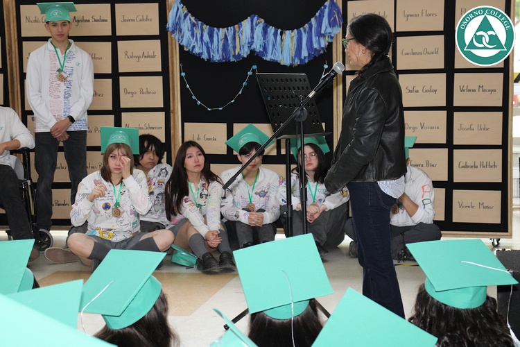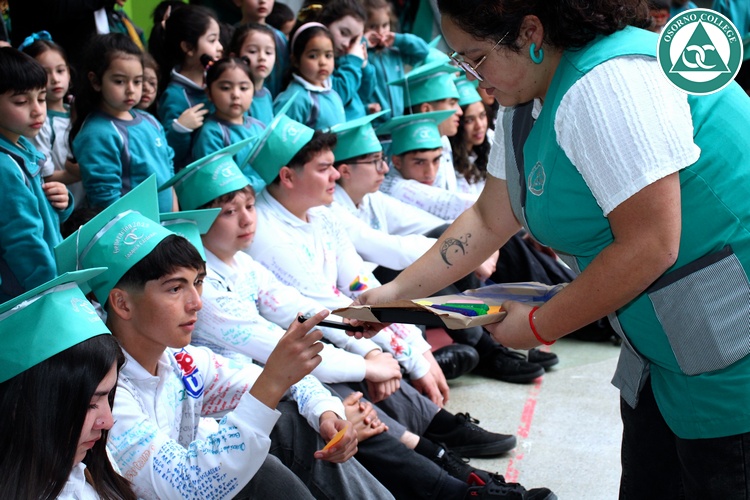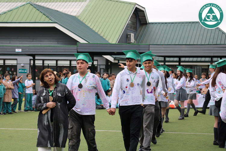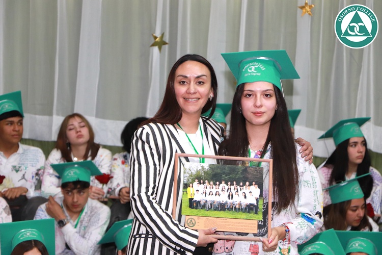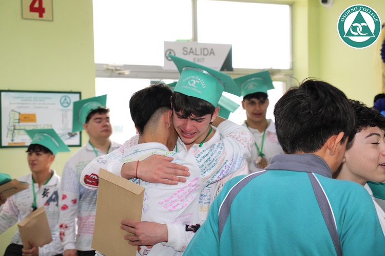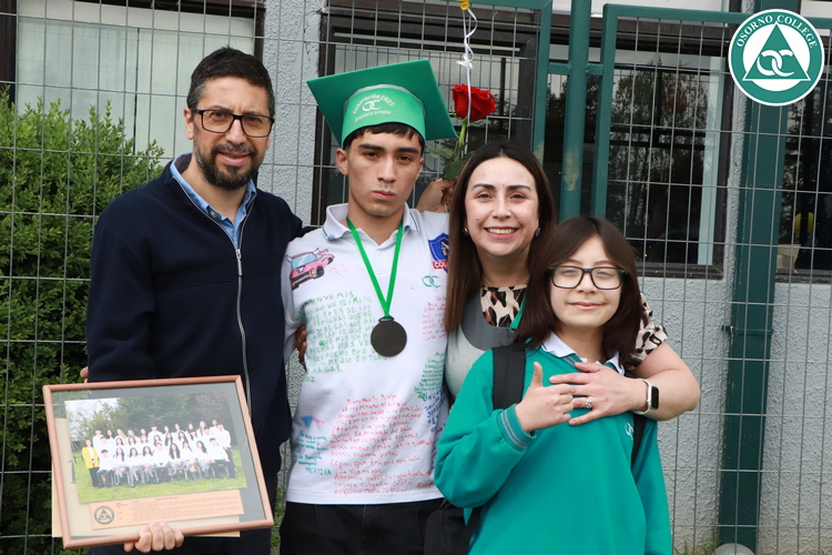 Uno de los momentos más emotivos de la ceremonia de “Última Lista” fue cuando la generación 2025 dijo “presente” al nombre de Diego Rosales Velásquez, su compañero de curso, nuestro querido estudiante, que, aunque ya no está con nosotros, sigue estando en el corazón del Osorno College y de quienes tuvieron la fortuna de compartir con él. Su madre, Ingrid Velásquez, recibió la polera de Dieguito con mensajes de sus compañeros y profesores que lo recuerdan siempre y especialmente en esta importante celebración.