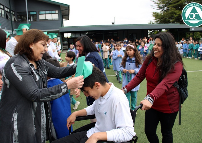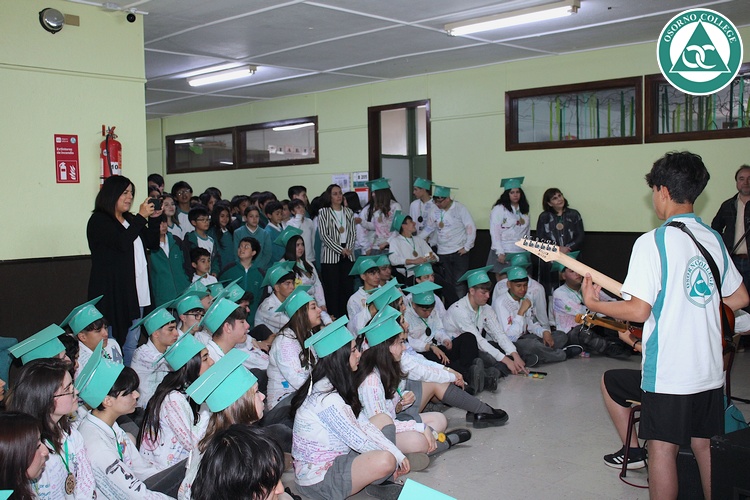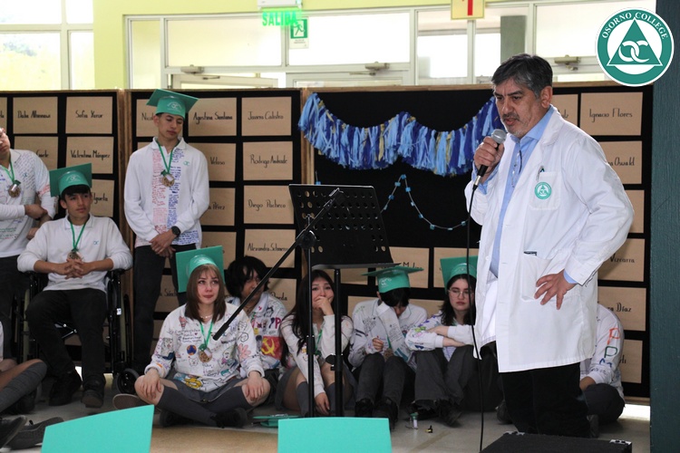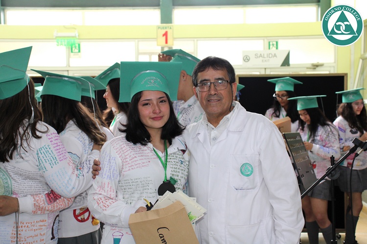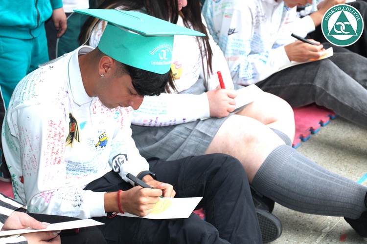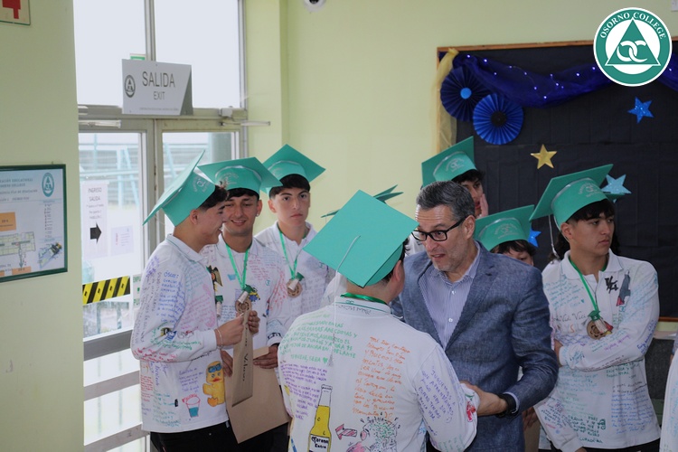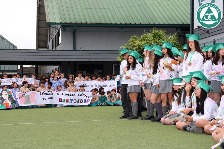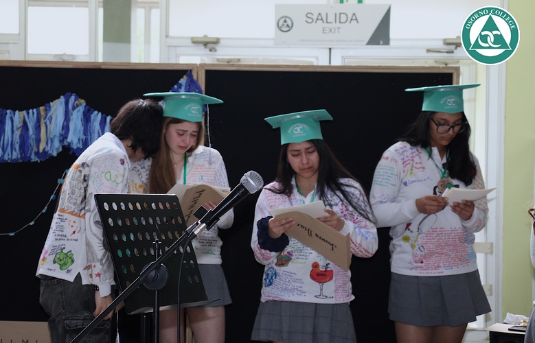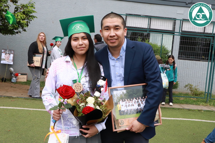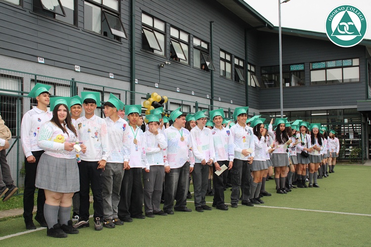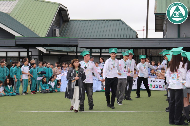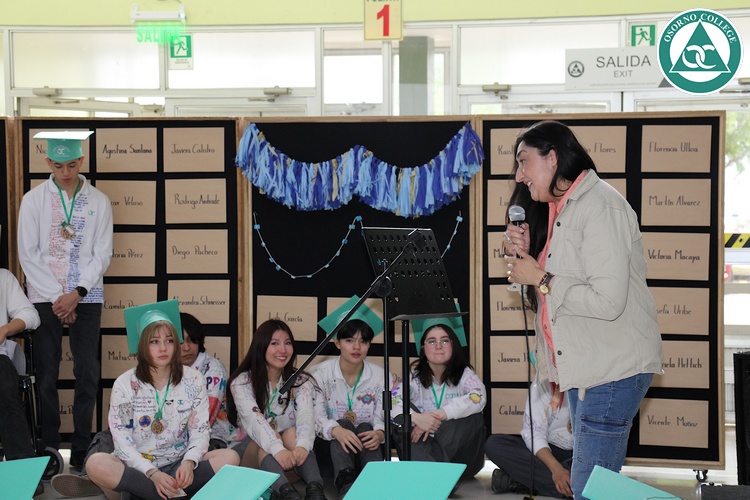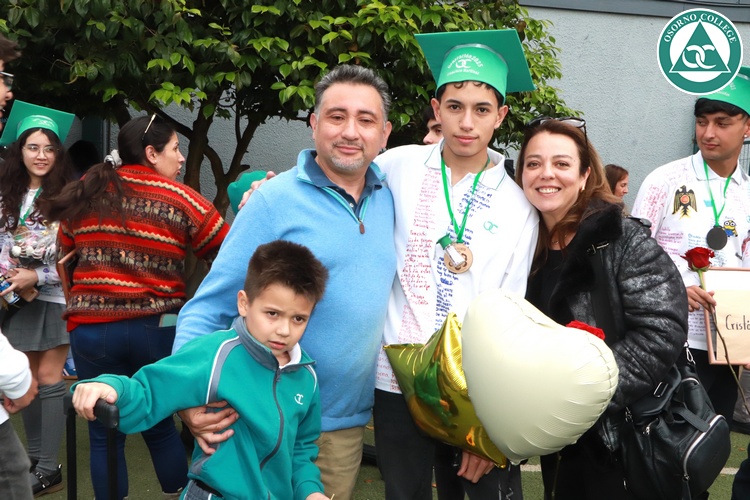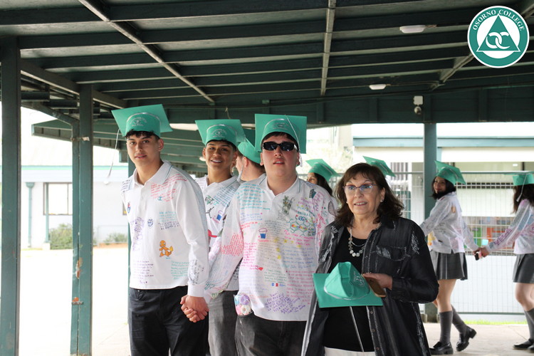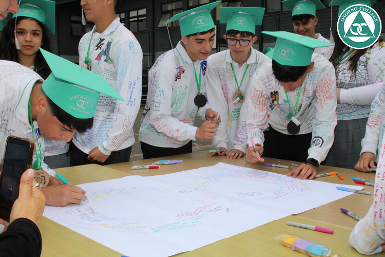 Uno de los momentos más emotivos de la ceremonia de “Última Lista” fue cuando la generación 2025 dijo “presente” al nombre de Diego Rosales Velásquez, su compañero de curso, nuestro querido estudiante, que, aunque ya no está con nosotros, sigue estando en el corazón del Osorno College y de quienes tuvieron la fortuna de compartir con él. Su madre, Ingrid Velásquez, recibió la polera de Dieguito con mensajes de sus compañeros y profesores que lo recuerdan siempre y especialmente en esta importante celebración.