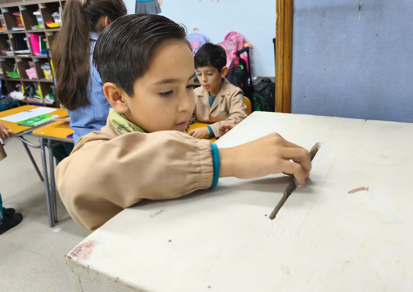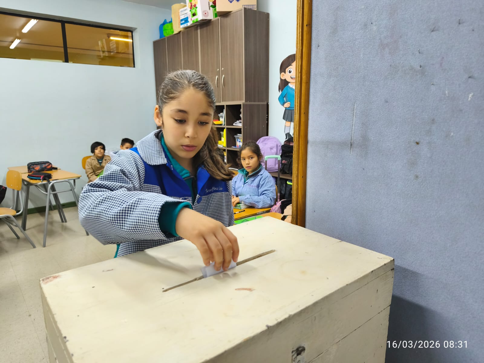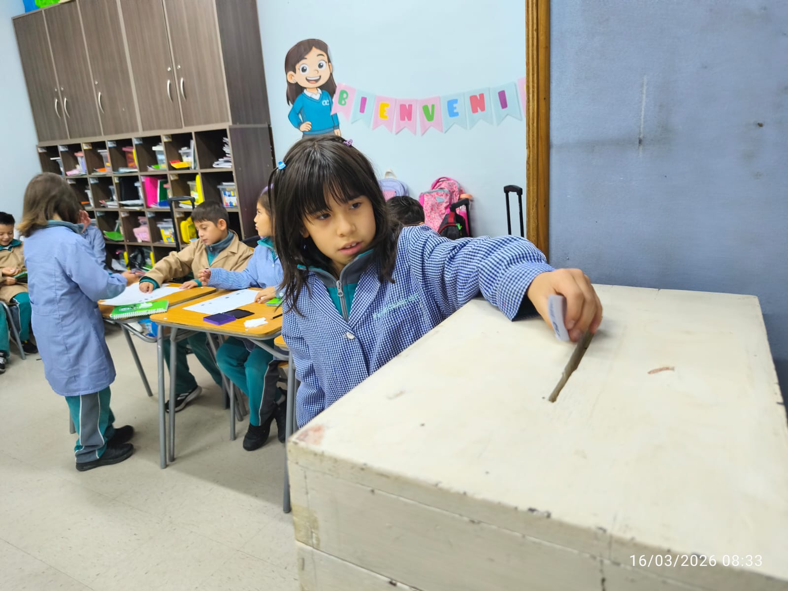 Así lo destacó el profesor de Laicismo y Formación Ciudadana, Luis Foitzick, quien explicó que las elecciones se realizan en todos los niveles, desde 1° básico, y con un despliegue en cada sala muy similar a los procesos eleccionarios nacionales, es decir con vocales de mesa que asumen los distintos roles, verificación de identidad (con la agenda escolar), libro de votantes, cabinas privadas, urnas, conteo de votos y siempre, cumpliendo con el respeto y la seriedad que se requiere.