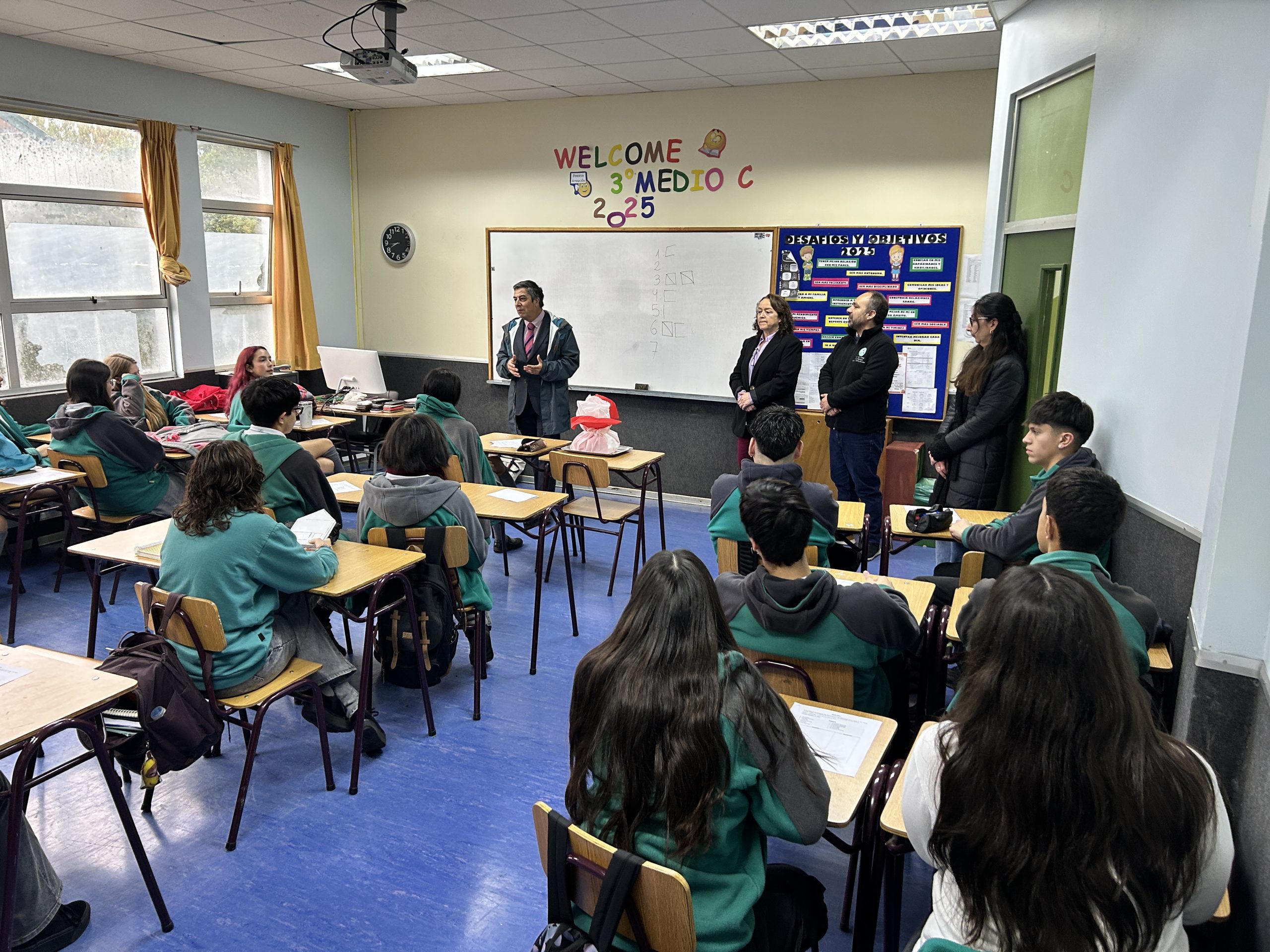 Un regalo muy especial recibieron los estudiantes de 7° y de III medio por los buenos resultados obtenidos en el SIMCE 2024 de parte del Rector Luis Muñoz, de la coordinadora de Docencia, Norma Martínez y del coordinador del Convivencia Escolar, Daniel Sáez.