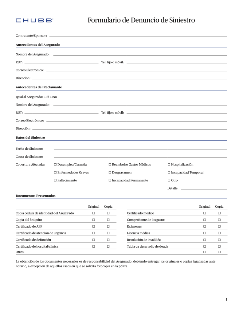 Reembolsos por accidentes personales Material Descargable Formulario de denuncio de siniestro Ver Documento Instructivo para reporte de siniestros Ver Documento